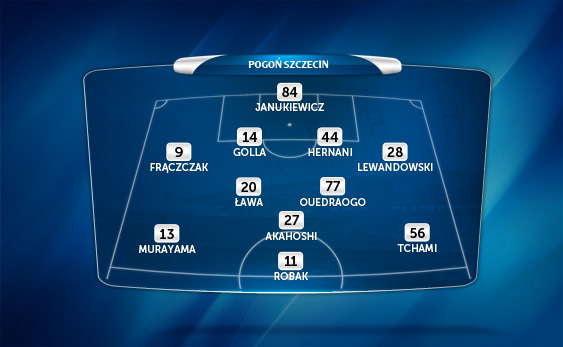 Pomoc: Jak zdecydowana większość klubów Ekstrakasy Pogoń również występuje w ustawieniu 1-4-2-3-1. Dwoma środkowymi pomocnikami są tutaj kapitan zespołu, Bartosz Ława, oraz Abdul Ouedraogo. Występ pierwszego z nich jest bezsprzeczny, natomiast w sobotę dowiemy się, czy bliżej pierwszego składu jest obecnie piłkarz z Wybrzeża Kości Słoniowej, czy Maksymilian Rogalski. Na lewym skrzydle ponownie może wystąpić nowo pozyskany piłkarz Herve Tchami, który miał udział przy samobójczym, zwycięskim dla Pogoni trafieniu Michała Pazdana, czy trener postawi na grającego w poprzednich czterech spotkaniach Jakuba Bąka. Jako że zwycięskiego składu nie zmienia się… Na prawym skrzydle wystąpi Takuya Murayama, a jako ofensywny pomocnik zagra Takafumi Akahoshi, który obecnie przewodzi w klasyfikacji kanadyjskiej z sześcioma punktami (cztery gole i dwie asysty). Podobnie jak w przypadku kapitana Bartosza Ławy, miejsce dwóch Japończyków w pierwszym składzie jest niezagrożone. Coraz mniej szans na grę otrzymuje Edi Carlos Dias Marçal, czyli dobiegający czterdziestki Edi Andradina, który obwieścił zakończenie kariery po sezonie.