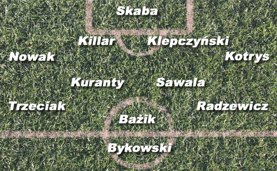 POMOC: W tej formacji trener Szatałow stawia na pięciu graczy. Za defensywę, rozbijanie ataków rywala i inicjowanie ataków odpowiedzialni są Jacek Kuranty i Szymon Sawala. Na bokach bytomskiej drużyny operują dwaj szybcy, dobrze wyszkoleni technicznie pomocnicy – Jacek Trzeciak oraz Marcin Radzewicz. Trzeciak to symbol Polonii Bytom, zawodnik, który daje zespołowi niezwykle wiele, zwłaszcza swoim doświadczeniem. Podobnie Radzewicz, który wciąż jest w stanie strzelić zaskakującego gola, dokładnie zacentrować i skutecznie dryblować. Najbardziej wysuniętym zawodnikiem w tej formacji jest Marek Bażik. To jeden z najważniejszych zawodników w talii Szatałowa. Sporo widzi na boisku, potrafi celnie podać i wykończyć akcję ofensywną (tak jak w jesiennym spotkaniu w Sosnowcu).