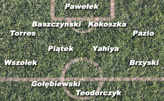Pomoc: Trener Stokowiec w tej formacji ustawia dwóch ofensywnie grających skrzydłowych oraz dwóch środkowych pomocników, którzy sporo uwagi muszą poświęcić defensywie. Z prawej strony zobaczymy Pawła Wszołka. Rezerwowy z poprzedniego sezonu teraz ma miejsce w podstawowym składzie i spisuje się bardzo dobrze. Jest jednym z tych piłkarzy, którzy napędzają ofensywę Polonii. Wszołek strzelił już jednego gola w meczu z Lechią Gdańsk. Z lewej strony natomiast powinniśmy zobaczyć Tomasza Brzyskiego. Zawodnik ten na lewą pomoc został przestawiony z obrony, więc nie można się po nim spodziewać aż tak ofensywnej gry jak po Wszołku, ale z pewnością zobaczymy w piątkowy wieczór kilka groźnych dośrodkowań lewą nogą w jego wykonaniu. Na środku zagrają zapewne Łukasz Piątek i Dieme Yahiya. Co prawda na tej pozycji może grać również pozyskany w ostatnich dniach Dimitrije Injac, który znalazł się w kadrze na mecz z Wisłą, ale on w ostatnich tygodniach trenował wyłącznie indywidualnie, więc na razie chyba nie może liczyć na występ od pierwszej minuty.