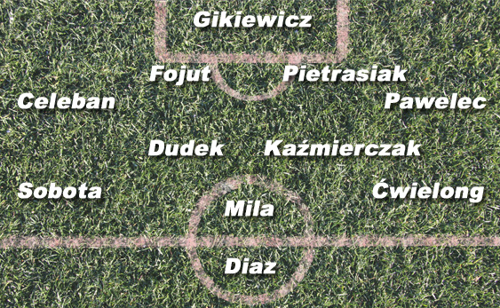 POMOC: W meczu z Wisłą za kartki pauzować będzie Rok Elsner, więc trener Lenczyk będzie musiał poszukać partnera dla Sebastiana Dudka w dwójce defensywnych pomocników. Wygląda na to, że szansę na grę od pierwszej minuty dostanie Przemysław Kaźmierczak, dla którego byłby to pierwszy mecz w podstawowym składzie od powrotu po kontuzji. „Kaz” to kolejny zawodnik, na którego należy zwrócić uwagę przy stałych fragmentach gry. Dodatkowo podkreślić należy, że nie jest on typowym defensywnym pomocnikiem, ponieważ angażuje się w praktycznie każdą akcję pod bramką rywala. Za zabezpieczenie obrony musiałby więc bezwzględnie odpowiadać Dudek, który bardzo dobrze prezentuje się w ostatnich spotkaniach. Na prawej stronie pomocy z dużym prawdopodobieństwem zobaczymy Waldemara Sobotę, który zbiera w tym sezonie bardzo pochlebne opinie. To piłkarz, który potrafi wygrać pojedynek jeden na jednego, a także bardzo dobrze współpracuje z partnerami przy wyprowadzaniu kontrataków. Po przeciwnej stronie boiska zagrać może dobrze prezentujący się ostatnio Piotr Ćwielong. „Pepe” strzelił gola w meczu z Zagłębiem Lubin, prezentuje też swoje walory, a więc szybkość i niezły drybling. Za plecami napastnika pewne miejsce w składzie ma Sebastian Mila. To kreatywny zawodnik, który potrafi nieszablonowym podaniem uruchomić partnera, a także bardzo dobrze wykonać stały fragment gry.