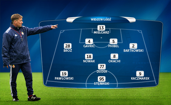 Pomoc: Na lewym skrzydle zagra zapewne Marcin Kaczmarek. O miejsce w środku pola obok Princewilla Okachiego powinni zawalczyć: Krystian Nowak i Sebastian Dudek. Jako że Widzew raczej będzie starał się grać z kontrataku, tak więc obok Okachiego miejsce zajmie Krystian Nowak, pod warunkiem, że na lewej obronie zagra Bartkowski. Jeśli tak się nie stanie, i na lewej obronie zagra Kramar, wtedy partnerować Okachiemu jako defensywny pomocnik będzie Bartkowski. Na prawej pomocy zobaczymy kolejnego młodego zawodnika, który ostatnio przyćmił Stępińskiego, mianowicie Bartłomieja Pawłowskiego. Często w sytuacji, kiedy Widzew stara się narzucić bardziej ofensywny styl gry, zmienia się on pozycją z ofensywnym pomocnikiem – na tej pozycji zagra najprawdopodobniej Sebastian Dudek, gdyż Veljko Batrovic nie wystąpił w ostatnim spotkaniu przeciwko Piatowi Gliwice - a również czasami pełni rolę drugiego napastnika, obok wspomnianego wcześniej Stępińskiego.