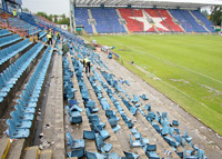 go miesiąca pisaliśmy: „Już od rana przy Reymonta 22 trwają prace przy rozbiórce sektora A oraz przy przenoszeniu rzeczy z budynku klubowego. Mimo padającego ulewnego deszczu od rana pracownicy klubu pakowali puchary, pamiątki, meble oraz wszelkie inne wyposażenie i przenosili do kontenerów, które ustawiane są za sektorem E. Jednocześnie na trybunie A rozpoczął się demontaż krzesełek. Robotnicy zdejmują również z sektora A i B barierki, odgradzające sektor od boiska.” Tak rozpoczęła się budowa ostatniej trybuny nowego stadionu Wisły.