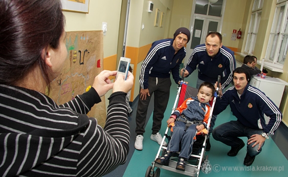 Gdy tylko piłkarze weszli do szpitala, opadła ich gromada najmłodszych, która towarzyszyła im aż do końca pobytu. Zawodnicy rozdali chorym wiślackie upominki, a dzieci od razu wykorzystały obecność Arka Głowackiego, Gordana Bunozy i Maora Meliksona i poprosiły o podpisy na plakatach, które otrzymały. Zawodnicy wypytywali się stan zdrowia dzieci i zachęcali je do wytrwałej walki o powrót do zdrowia. Nie zabrakło oczywiście pamiątkowych zdjęć.