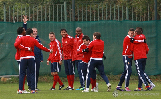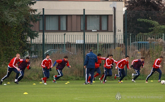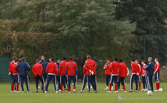 Trening piłkarzy Białej Gwiazdy miał standardowy charakter. Początkowo odbyli krótką rozgrzewkę, a następnie zgodnie z poleceniami trenerów doszkalali poszczególne elementy gry.