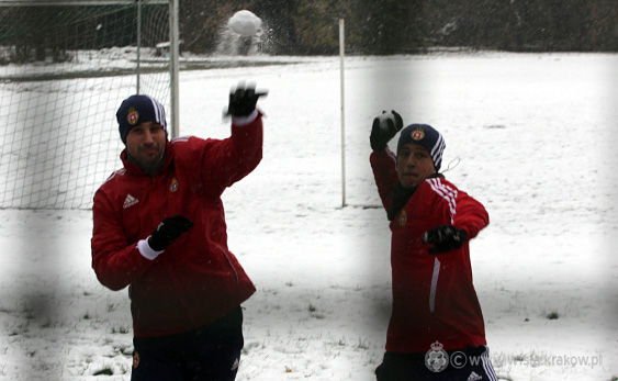 Data publikacji: 29-10-2012 13:34W Krakowie od soboty cały czas pada śnieg. Nie dziwi więc, że piłkarze Wisły w poniedziałek ćwiczyli na zaśnieżonej murawie. Na szczęście nie pokrzyżowało to zbytnio planów przygotowań do meczu z Lechem Poznań.
