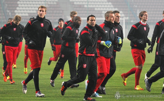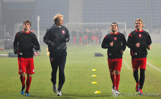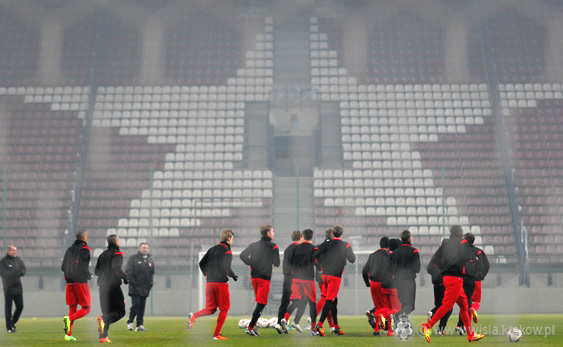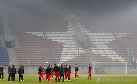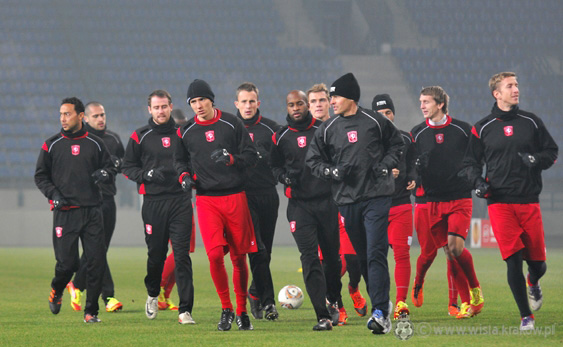 Holenderscy piłkarze byli przygotowani na chłód, którego spodziewali się w Krakowie. Część z zawodników ubrana była w czapki, rękawiczki, getry i ocieplacze na szyję. Bardziej jednak niż chłód piłkarzom Twente w treningu mogła przeszkadzać mgła unosząca się nad murawą przy Reymonta 22.