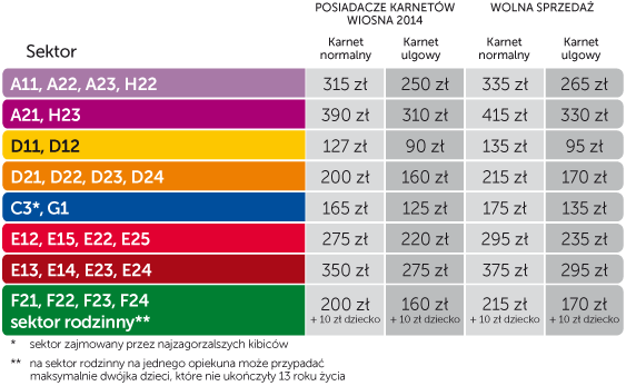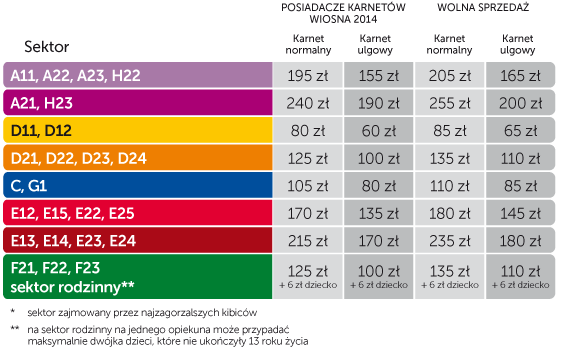 - ze sprzedaży karnetów wyłączone są sektory B, E11, E16, E21, E26, F11, F12, F24, G2, G3, H11 oraz H21