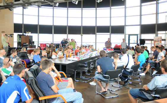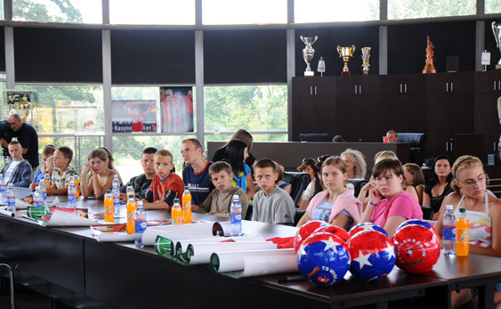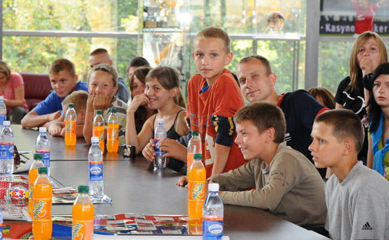 W pawilonie medialnym klubu zjawiła się grupa około 30 dzieci, zarówno z Gdańska, jak i z Sieborowic. Towarzyszyli im opiekunowie oraz przedstawiciele SKWK. „Witam wszystkich. Cieszymy się, że jesteście z nami. Mamy nadzieję, że to spotkanie będzie takim miłym akcentem podczas waszych wakacji w Krakowie” – przywitał dzieci trener Maciej Skorża.