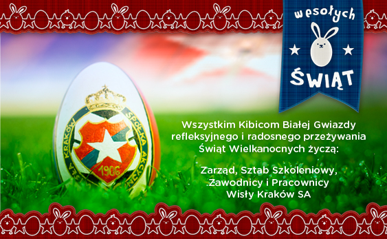 Data publikacji: 19-04-2014 09:40Wszystkim kibicom Wisły życzymy Wielkanocy radosnej i pełnej słońca. Życzymy wielu rodzinnych spotkań, wiosennych spacerów, dyngusowych uciech.