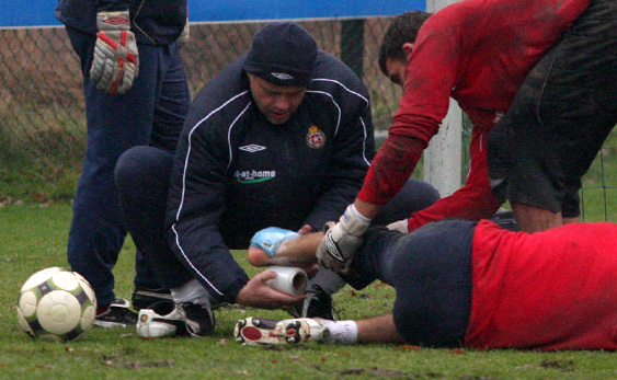 Jak gdyby złych informacji było mało, już po kilku minutach trening zakończył Mariusz Pawełek. Bramkarz Wisły z boiska zszedł z obłożoną lodem kostką, kuśtykając na jednej nodze. Na razie nie wiadomo, na ile poważny jest jego uraz.