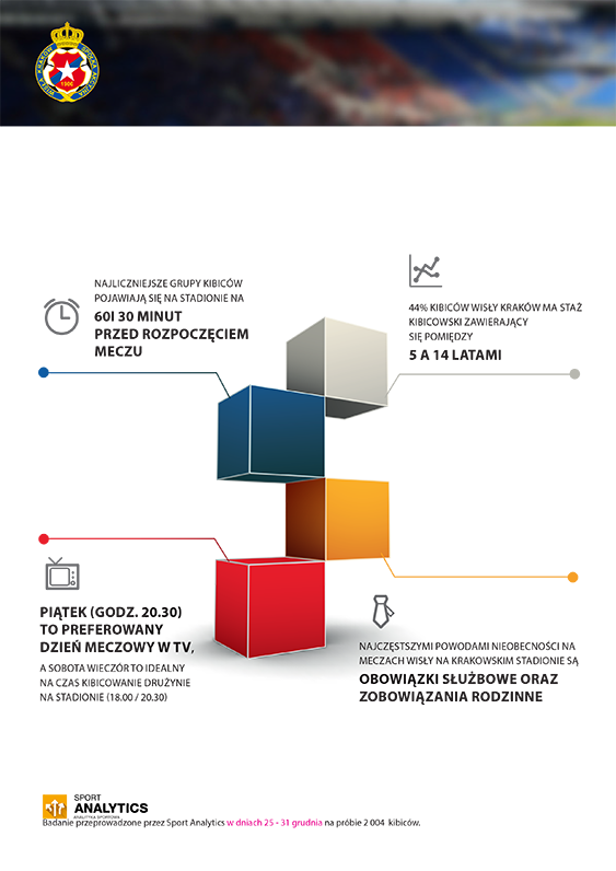 „Cała Wisła zawsze razem” oraz „Wisła Kraków to jedna rodzina” - te hasła idealnie pokrywają się z wynikami badań. Największy wpływ na przyjście i pozostanie przy Reymonta dla ankietowanych mieli rodzina oraz przyjaciele.