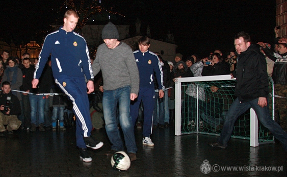 Data publikacji: 08-01-2012 21:05Jedną z atrakcji tegorocznego finału Wielkiej Orkiestry Świątecznej Pomocy w Krakowie był mini mecz, rozegrany przez piłkarzy Białej Gwiazdy na płycie Rynku Głównego.