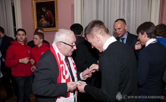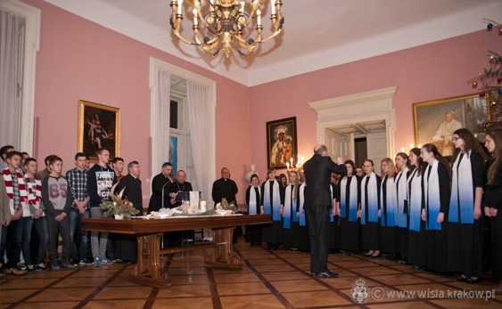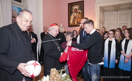 Kardynał otrzymał od piłkarzy Wisły Kraków koszulkę Białej Gwiazdy ze swoim nazwiskiem na plecach oraz z autografami całej drużyny. Podczas składania życzeń gościom towarzyszyły kolędy śpiewane przez chór I LO.