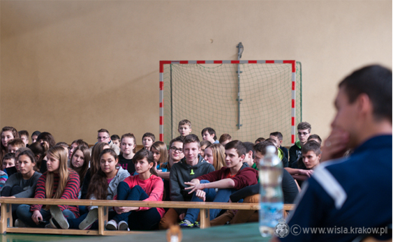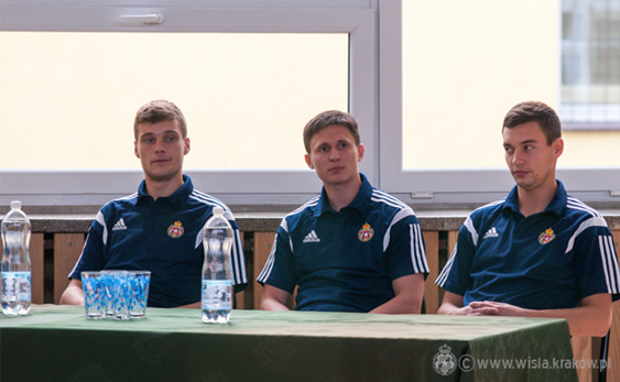Wspomniana trójka zawodników Białej Gwiazdy spotkała się z uczniami szkoły przed bardzo ważnym meczem z Lechem Poznań. Podczas wizyty młodzi wiślacy - fani futbolu mogli nie tylko porozmawiać ze swoimi ulubieńcami, ale także zadać pytanie lub zrobić pamiątkowe zdjęcie. Zebraną młodzież najbardziej intersowało to, jak wygląda życie piłkarza, jak zaczynali swoją przygodę piłkarską oraz... czy żona piłkarza wiedzie ciężkie życie.