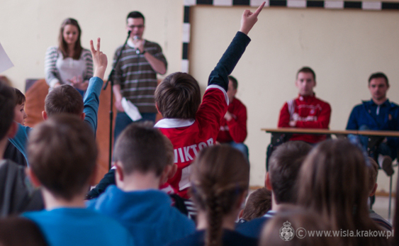 Podczas spotkania zorganizowanego przez Stowarzyszenie Kibiców Wisły Kraków wspólnie z Wisłą Kraków uczniowie szkoły mogli nie tylko porozmawiać ze swoimi ulubieńcami, ale także zdobyć wartościowe nagrody.