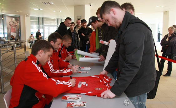 Data publikacji: 01-04-2011 15:15W piątek, 1 kwietnia o godz. 14:00, kibice, którzy przybyli do Strefy Kibica, mogli spotkać piłkarzy Białej Gwiazdy!