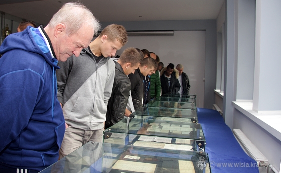 Zebranych gości powitał prezes TS Wisła Ludwik Miętta-Mikołajewicz wraz z kustoszem wystawy Dariuszem Zastawnym, który przybyłym piłkarzom przybliżył historię życia Henryka Reymana.