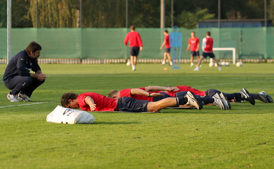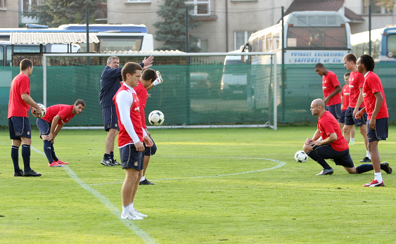 Po wolnej dla większości niedzieli zawodnicy wrócili do normalnych zajęć. Ci, którzy wczoraj byli w Warszawie, na meczu Młodej Ekstraklasy z Polonią Warszawa, mieli pomeczowe rozbieganie. Do tej grupy, która ćwiczyła pod okiem Paolo Terziottiego, dołączył też Piotr Brożek. Z trenerem Bahrem natomiast, po wspólnej rozgrzewce z resztą drużyny, indywidualnie ćwiczył Łukasz Garguła.