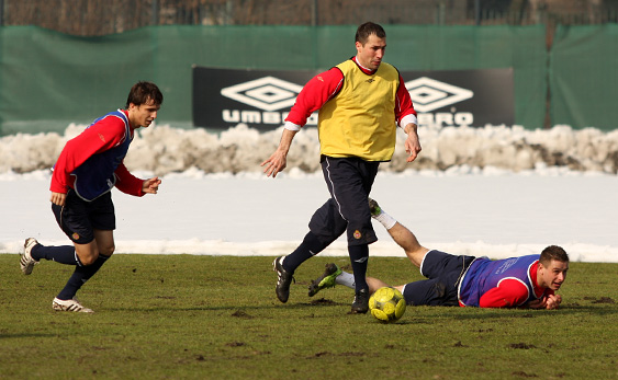 W środę już prawie na pełnych obrotach ćwiczył Marcelo. Jeszcze wczoraj mówił nam, że do występu w meczu jest przygotowany na 70 procent, a już dziś nie wziął udziału tylko w dwóch ćwiczeniach. Co ciekawe, swój powrót do gierek treningowych brazylijski obrońca okrasił trzema golami. Najwyraźniej więc forma strzelecka z jesieni w trakcie przerwy zimowej nie opuściła Marcelo. W treningu z resztą zespołu natomiast nie wziął udziału Piotr Brożek. „Piotrek miał lżejszy dzień, ale już w czwartek będzie ćwiczył normalnie. On sam już dziś rwał się do treningu, ale zalecenia lekarzy były takie, żeby odpuścić mu środowy trening” – poinformował trener Janas.