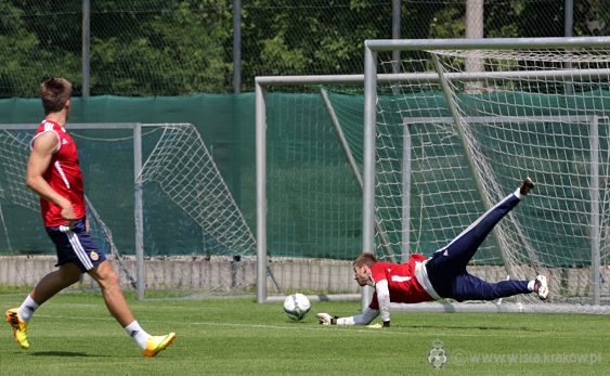 Następnie piłkarze przy linii bocznej boiska trenowali szybkość oraz wytrzymałość. Na koniec zajęć podopieczni Franciszka Smudy pod czujnym okiem sztabu szkoleniowego ćwiczyli umiejętności strzeleckie. Dziś po raz pierwszy w zajęciach uczestniczył testowany przez Białą Gwiazdę Daniel Mendie.