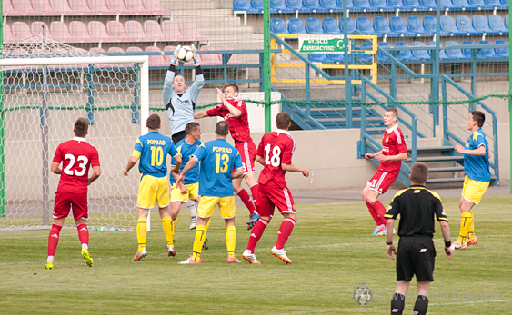 W 31. minucie powinno być 1:0 dla krakowskiej drużyny. W doskonałej sytuacji pod bramką Różalskiego znalazł się Bartosz, ale jego strzał z kilku metrów z dużym trudem obronił bramkarz Popradu. Podobnie zakończyła się szybka akcja Szewczyka prawą stroną boiska. To oznaczało tylko jedno: do przerwy bezbramkowy remis.