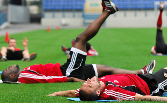 Drużyna została podzielona na dwie grupy. Ci, którzy byli w Bułgarii, mieli rozbieganie na boisku głównym. Pozostali zawodnicy odbyli normalny trening na boisku bocznym. W czwartek i piątek zespół będzie trenował już razem, a w sobotę drużynę czeka inauguracja sezonu ligowego. Na początek Biała Gwiazda zmierzy się w Łodzi z Widzewem.