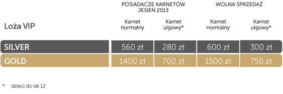 W cenę karnetu Gold wliczone są: ekskluzywny catering, oznaczenie fotelika logotypem nabywcy, miejsce parkingowe.