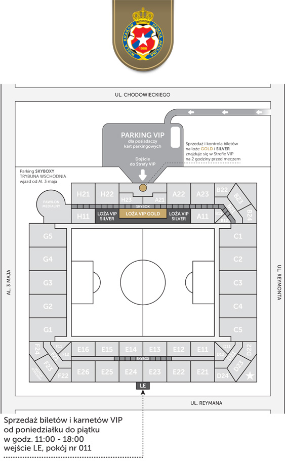 Podobnie jak w zeszłym roku na mecz do Strefy VIP można dostać się od ul. Reymonta (wjazd pomiędzy starą i nową halą Wisły).